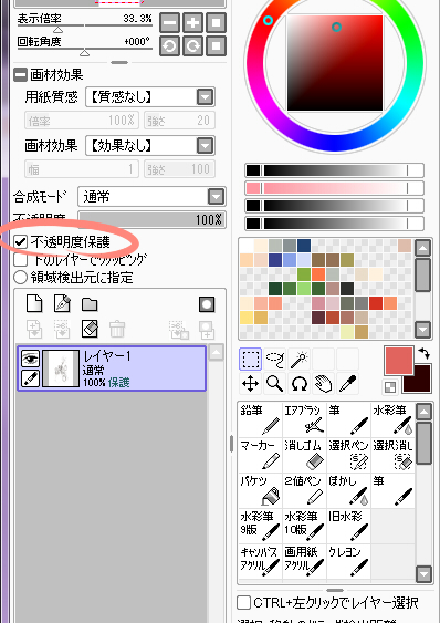 ・色を塗る際に自動選択を用いて簡単に着色範囲を選択できる