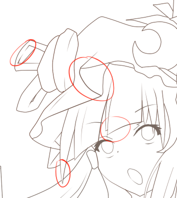 恐らく線が歪になっていたり滑らかな曲線になっていない所、繋がっていないところ、はみ出てしまっているところなどがあると思います。